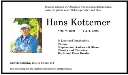 Mit großer Bestürzung haben wir erst jetzt erfahren, dass am 4. Juli unser lieber Genosse und unser langjähriges Vorstandsmitglied Hans Kottemer gestorben ist. Hans war für uns stets eine verlässliche Säule der Ortsvereinsabeit: emsig, kritisch, loyal und mit einem ganz großen Herzen für alle, die nicht auf der Sonnenseite des Lebens stehen. In vielen Vereinen – u.a. dem Koblenzer Jugendtheater e. V. – hat er lange und zupacken engagiert. Er wird uns sehr fehlen.